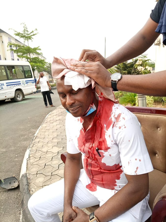 Senator Okorocha stormed Royal Spring Palm, unseals Estate and warns Uzodinma and his hoodlums to stay off his property. The event led to Okorocha’s orderly bleeding from a heavy head cut given to him by Chinasa Nwaneri, S.A to Uzodinma on Special Duties. Read below…