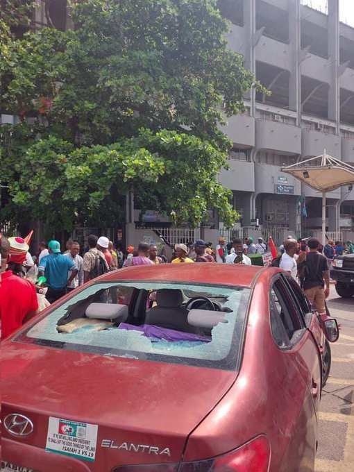 This is fucking hilarious …. At the foot of third mainland bridge they’ve blocked half of the exit and there are agbero boys sitting close to the bus with bottles of beer. Guess what? No LASTMA They want to frustrate this rally
