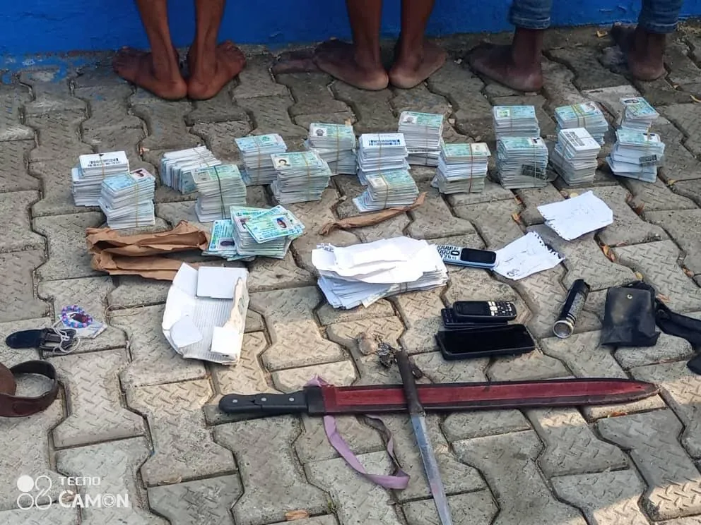 “Earlier today (Wednesday),  three young men were arrested with  1,671  PVCs.  This  was after an early information was  received. With the support of the Department of State Services (DSS), we were able to arrest them. They were arrested with some drugs,  dagger, charms and over one thousand  PVCs.