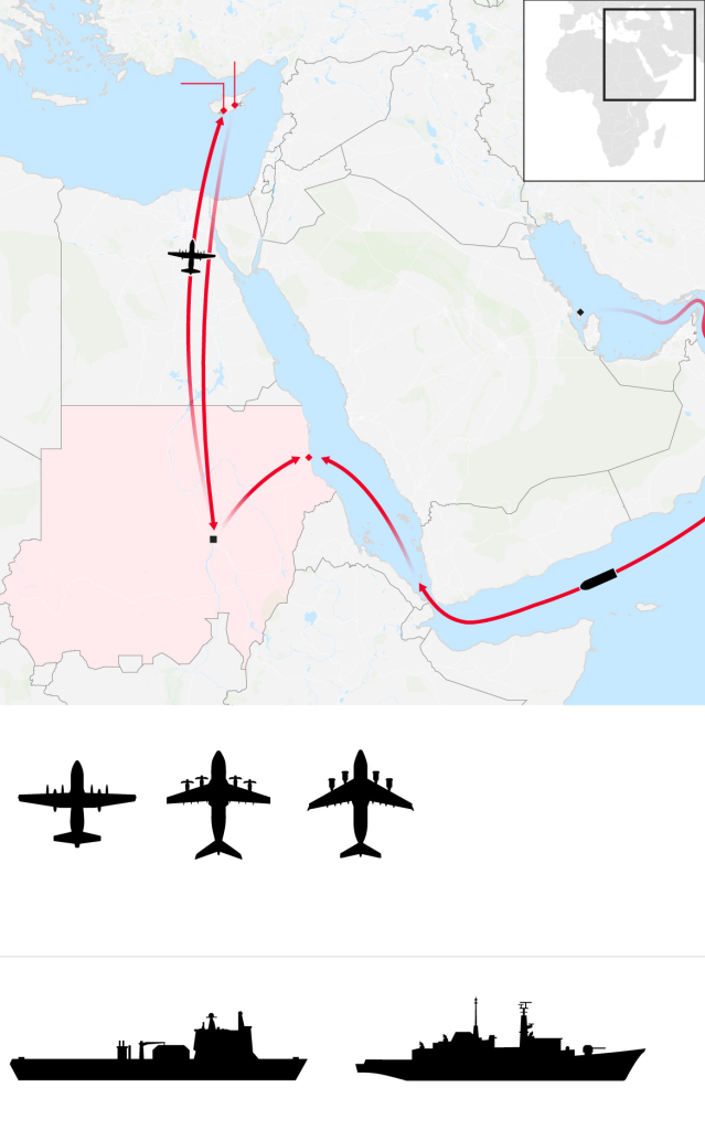 The Royal Navy frigate HMS Lancaster sailed towards the Red Sea port of Port Sudan to continue evacuations if it becomes too dangerous to fly into the country.