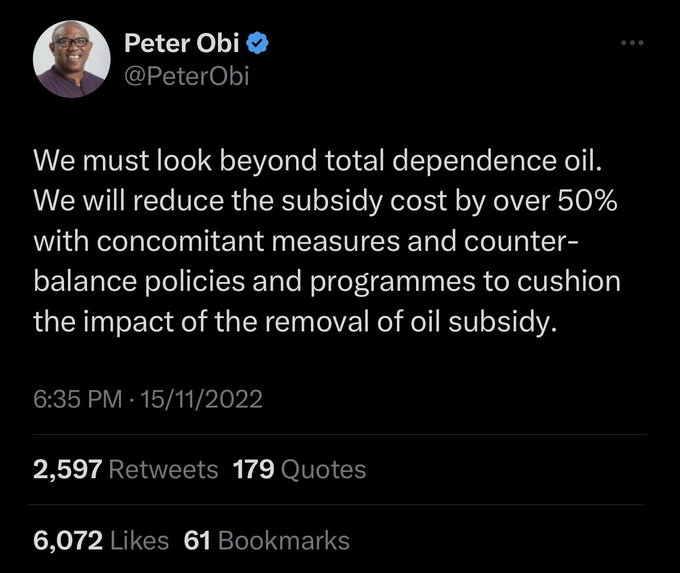How i will handle fuel subsidy removal/Peter Obi