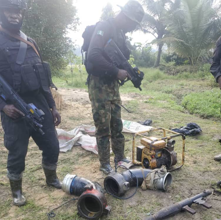 The well-conducted raid operation led to the recovery of 5 AK 47 Rifles, 2 Rocket Propelled Grenade Bombs, 4 Rocket Grenade Bomb Chargers, seven 7.62mm Special ammunition, 14 AK 47 Rifle Magazines and one pumping machine. Other items recovered include two 16-inch anchored verve, one mallet hammer, one pipe range spinner and one axe.