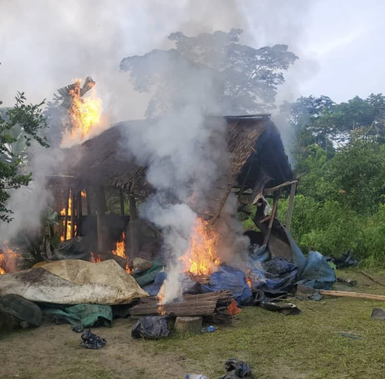The illicit camp has been destroyed by the troops.