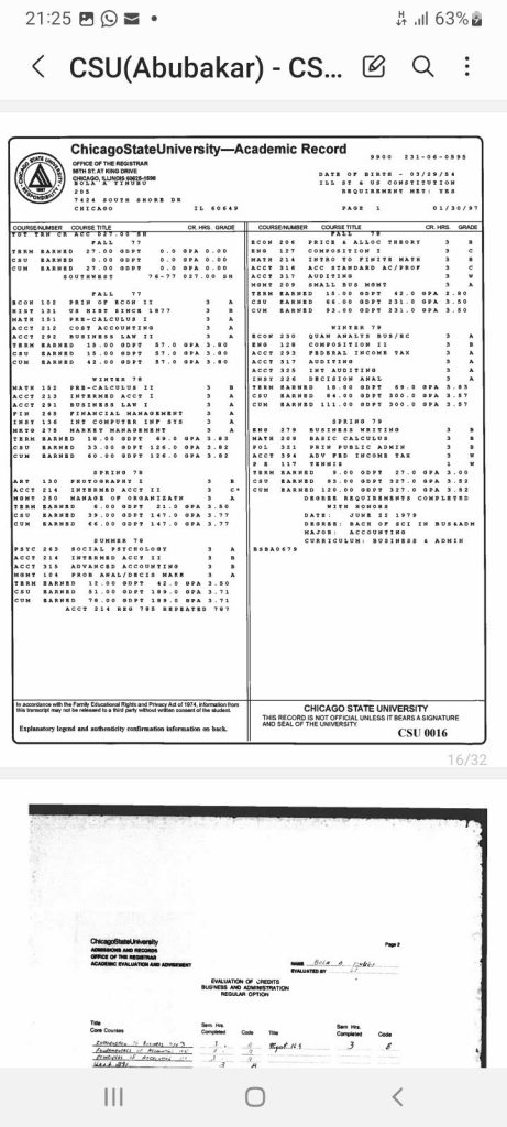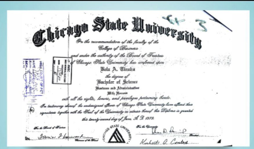 In the document seen by JOURNALIST101, one of the striking thing in the records is that the academic record from SouthWest College he used in gaining admission into Chicago State University belongs to female.