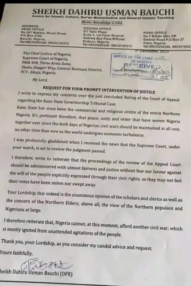 Prominent Sufi leader calls for the intervention of CJN on Kano judgement