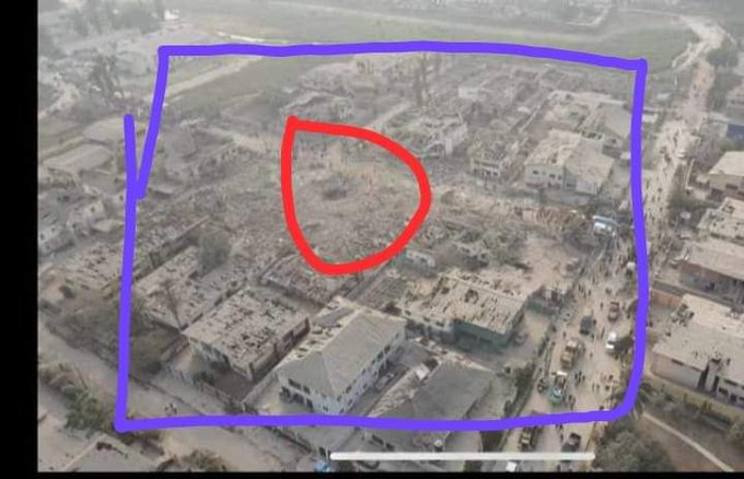 #IbadanExplosion Deep crater at point of detonation in RED. Blue area and distance of impact in BLUE. Government should just tell residents the truth and place Amotekun on alert. This is a terrorist activity.