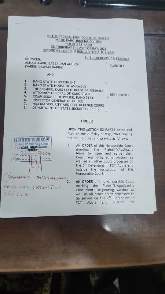 Justice Liman gave the order on Thursday night while after considering the motion ex-parte filed by a traditional title holder, the Sarkin Dawaki Babba, Aminu Babba-Dan’Agundi.