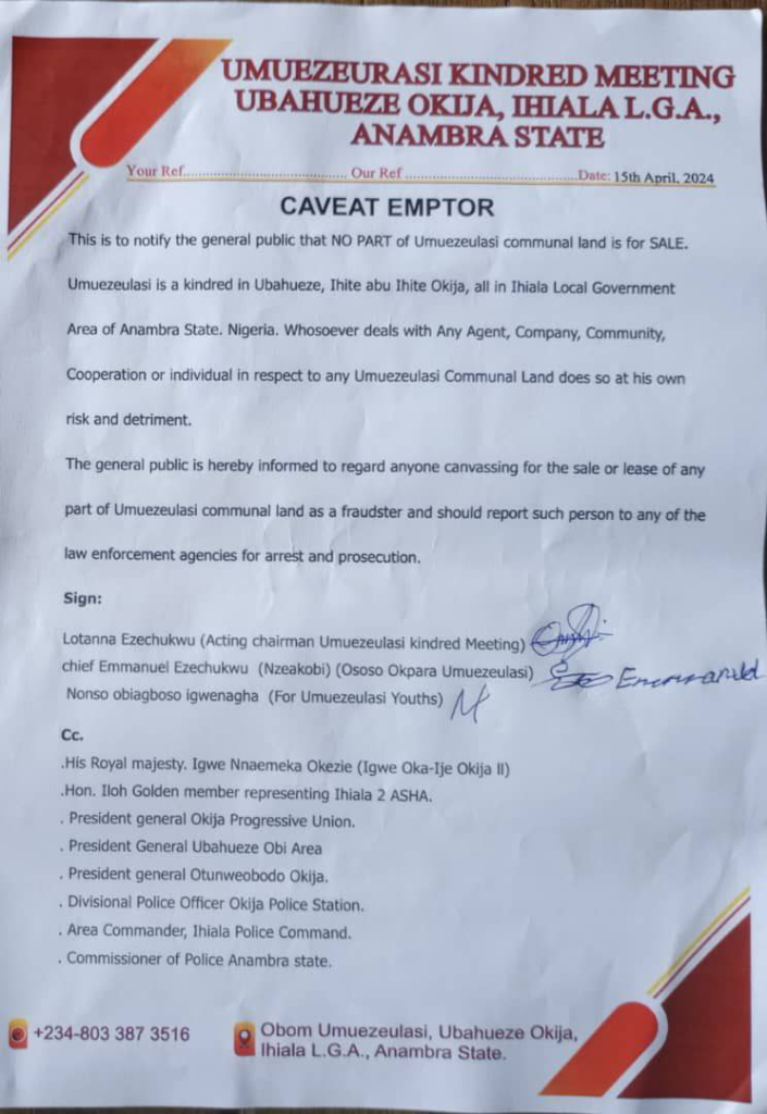 ANNOUNCEMENT Okija people wish to announce to the entire Biafrans and to whom it may concern that no land in Okija is for sale or for Ruga. The man in the picture, is said to be one Mr Obijackson. We are calling on him to stay away from any land in Biafra land not just in Okija. Anyone involved is selling land to Fulani terrorists will surely regret such dealings./Simon Ekpa