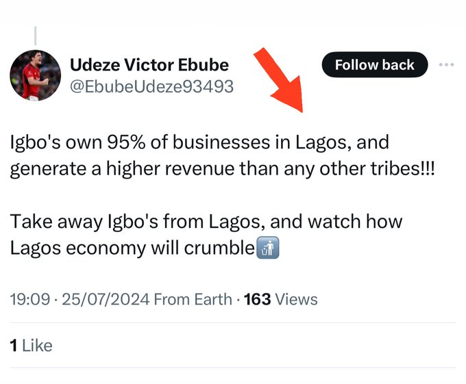 Dear Ebube, Thank you for your feedback. Nobody in Nigeria is big enough to drive the Igbos away from Lagos or Nigeria. Igbos are a blessing our motherland. If anyone tries it, Reno Omokri will fight them, as I fought Buhari for marginalising Igbos. Having said that, are you aware that Igbos removed themselves from Nigeria between 1967 and 1970? Nobody drove them. Our brothers and sisters left on their own accord. And fact-check me: That period was the period Nigeria abc Lagos in particular had their biggest GDP growth. In 1969, our GDP growth was 24.20%. In 1970, it grew to our highest ever at 25.01% $10,000 in Naira equivalent if you can fault me. This was because when our brothers and sisters left Nigeria, importation ground to a halt, and manufacturing increased. But when they returned, importation began again, and cheap imports destroyed the Lagos-Ogun manufacturing cluster. Importation makes traders rich, but destroys the local economy. Thanks again, and may God bless you./Reno Omokri