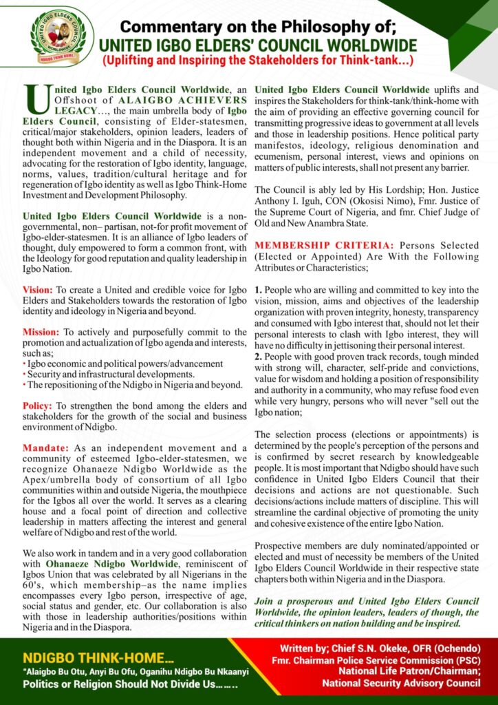 UNITED IGBO ELDERS’ COUNCIL WORLDWIDE