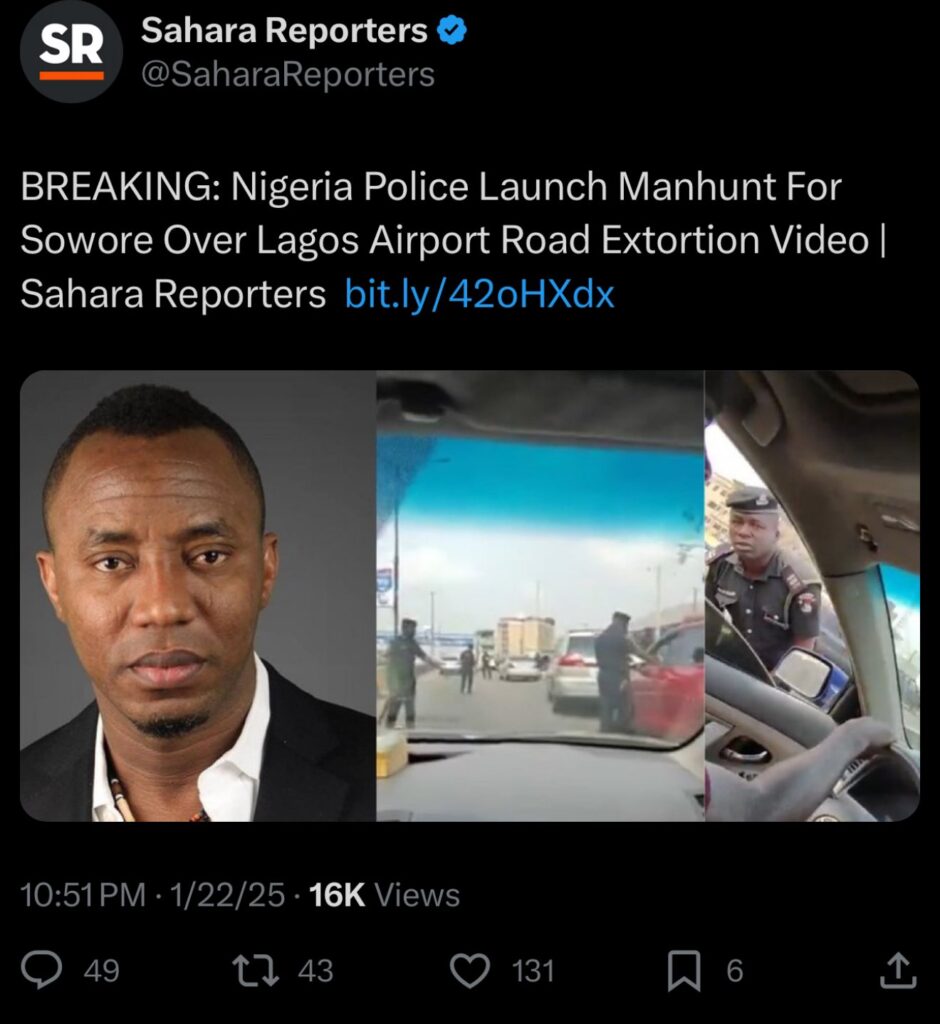 I have been informed that the Nigeria Police Force @PoliceNG is searching for me. I am currently in Abuja and available at their convenience. It appears that the new year is about to start on a positive note! #Revolutionnow.