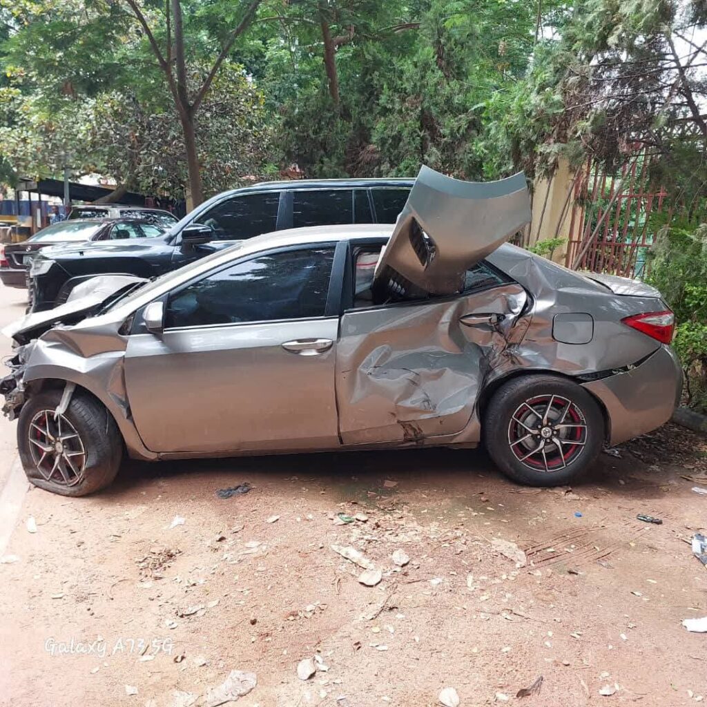 The two damaged vehicles have been evacuated to Maitama Police Station Nile Street.
